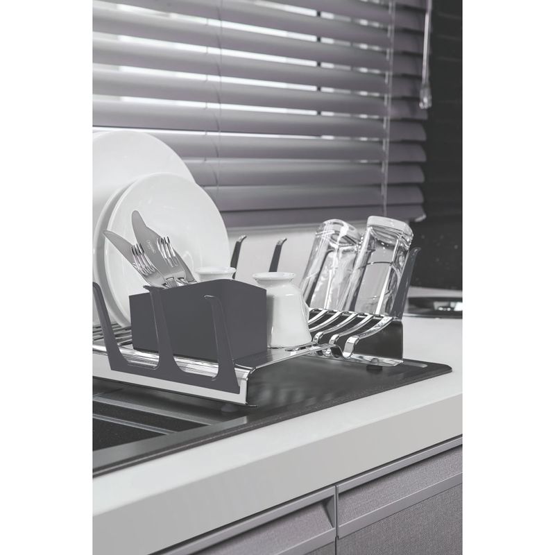 Você irá surpreender-se com o Escorredor de Louça Tramontina em Aço Inox com Secador de Copos e Porta Talheres Grafite da linha Plurale. Uma peça que proporcionará para a sua cozinha praticidade, além de beleza e modernidade com seu design inovador. Produzido em aço inox, ele é altamente durável. Além disso, conta com pés de silicone, evitando que a peça escorregue ou arranhe as superfícies, oferecendo capacidade para acomodar 16 pratos e 12 copos. O porta-talheres e porta-copos são produzidos em polipropileno, com encaixe no corpo do escorredor. O produto certo para deixar a sua cozinha mais descontraída, sem deixar de lado a funcionalidade para o dia a dia.
