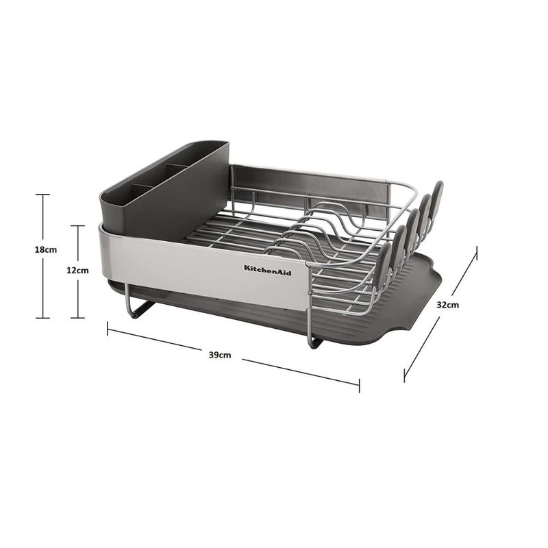 O escorredor de pratos da Kitchenaid possui design compacto minimizando o uso da sua bancada, comporta até 9 pratos, cinco xícaras e muito mais.