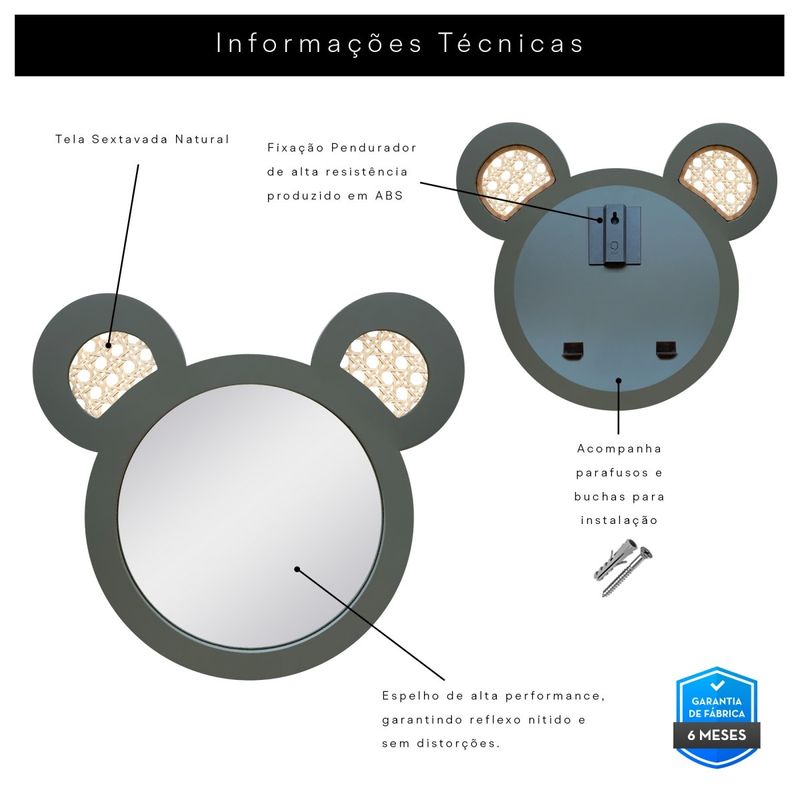 Feito com materiais seguros e duráveis, o espelho é fácil de instalar e mantém o ambiente seguro e estiloso. Perfeito para complementar a decoração do quarto do seu filho, criando um espaço mais acolhedor e cheio de personalidade.