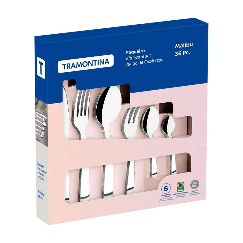 O Faqueiro Tramontina Malibu 36 peças em aço inox é elegante, resistente e prático para o dia a dia. Produzido totalmente em aço inox, mantém sua beleza, higiene e durabilidade por muito mais tempo, mesmo com uso frequente.