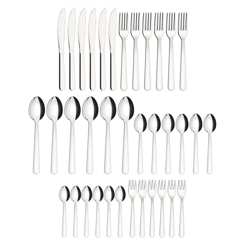 As lâminas das facas recebem tratamento térmico para maior durabilidade do fio, enquanto os garfos e colheres possuem espessura especial e lâminas estampadas para oferecer mais resistência. Além disso, os talheres não deformam mesmo expostos a altas temperaturas.