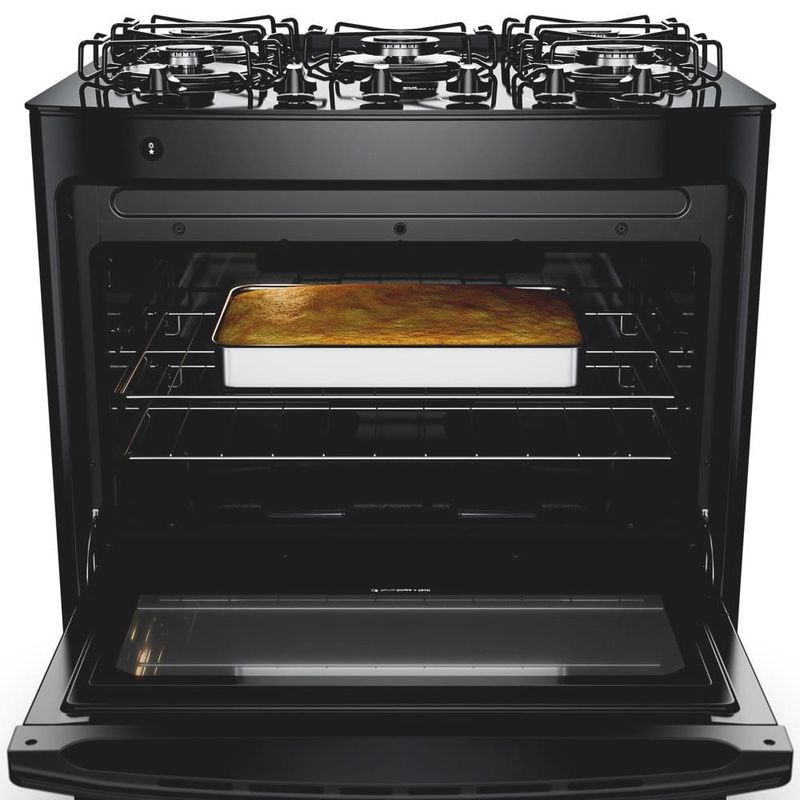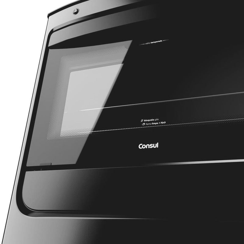 Sua cozinha vai ficar mais moderna, seus pratos mais gostosos e sua rotina muito mais prática! O Fogão Consul 5 bocas preto com mesa de vidro foi pensado para unir design e inteligência. Ele dá aquele toque de sofisticação ao ambiente e é superfácil de limpar: um pano úmido e pronto, sem complicação. O forno é um show à parte: com 96 litros de capacidade, ele assa um bolo para a família em menos de 35 minutos. E a segurança foi pensada em cada detalhe: as grades da mesa têm mais pontos de apoio para dar firmeza às panelas, as quinas não cortam e a válvula de segurança corta o gás em caso de vazamento. É a Consul com soluções bem pensadas para deixar seus momentos na cozinha mais seguros, práticos e saborosos. Bem pensado, né?