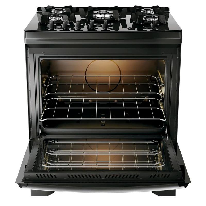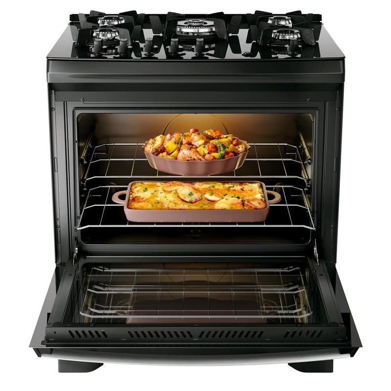 Tripla chama na versão 5 bocas, garantindo preparo mais rápido dos alimentos
