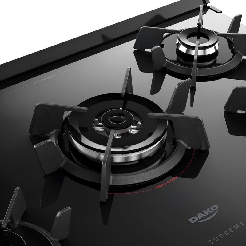 Fogão 5 Bocas Dako Supreme Glass com Mesa de Vidro e Acendimento Automático Preto - Bivolt
