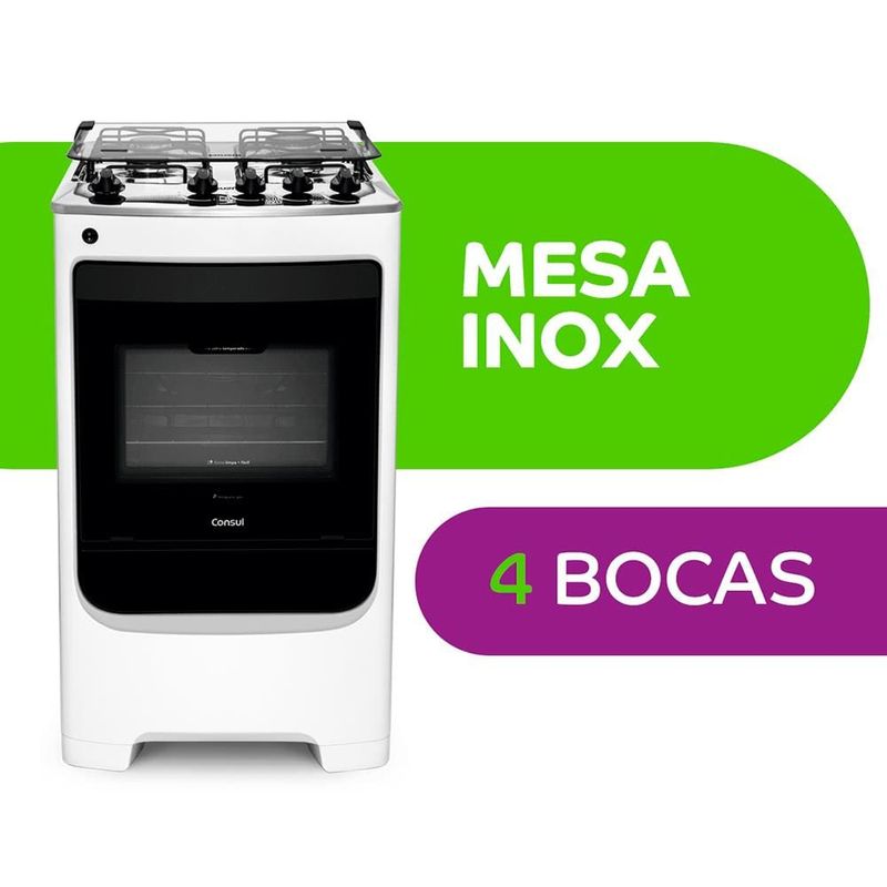 Fogão Consul 4 Bocas CFO4NAB com Mesa de Inox, Acendimento Automático e Design Frente Única Bivolt - Branco