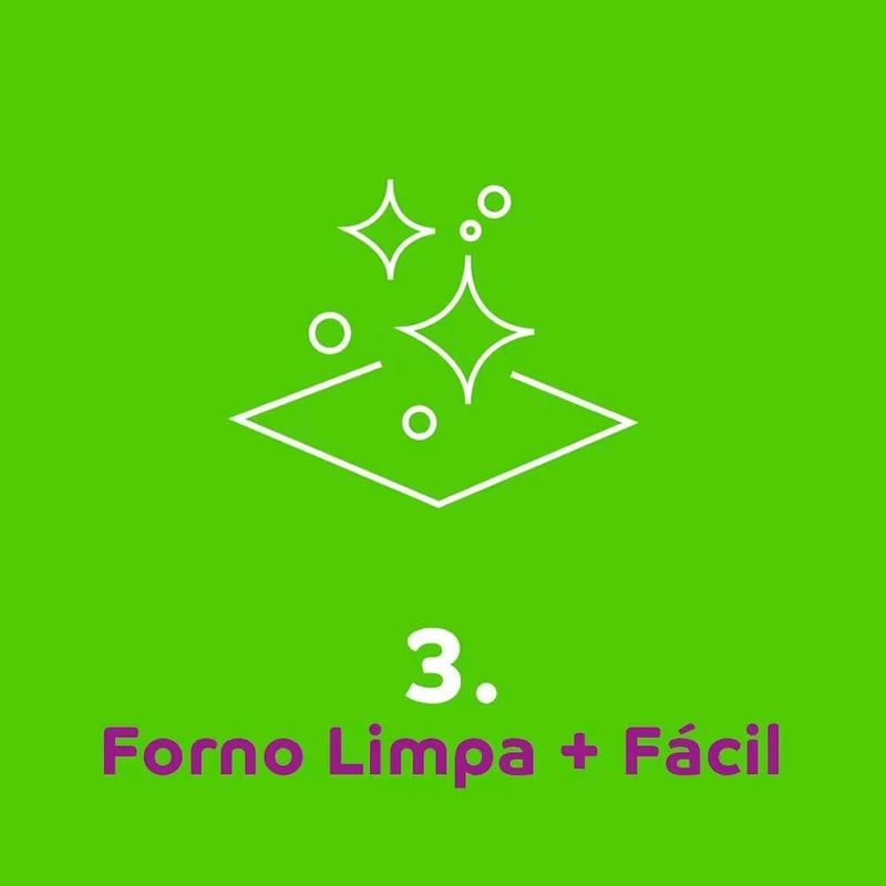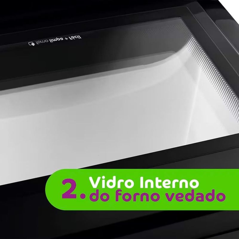 Seu design em frente única e sem recortes facilita a limpeza do fogão, pois não há espaços pequenos nos quais a sujeira possa se acumular. Além disso, possui queimadores de alto desempenho que garantem uma maior velocidade de preparos, além de possibilitar mais flexibilidade de receitas e Forno Limpa + Fácil com uma inovadora tecnologia que garante mais facilidade de limpeza, pois possui revestimento totalmente liso e esmaltado, evitando absorção de gordura.