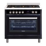 Esse Fogão a Gás 5 Queimadores 90cm Cuisinart Arkton possui 8 funções: Lâmpada, descongelar, cozimento tradicional, cozimento delicado, cozimento do forno superior, cozimento por grill, cozimento grill com convecção e cozimento por convecção. Blue Sky Enamel: esmalte azul nas extremidades internas do forno que melhora a condução do calor e facilita a limpeza, além de melhorar a visualização interna dos produtos. Ventiladores de dupla circulação. Sistema de refrigeração tangencial. 5 queimadores: 1 auxiliar, 2 semi-rápido, 1 rápido e 1 chama-tripla. Queimadores Sabaf de alta eficiência.