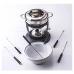 • Conteúdo da Embalagem: 1 Panela em Porcelana, 1 Panela em Inox, 1 Base, 1 Separador de garfos, 5 Garfos, 1 Queimador com 1 Tampa