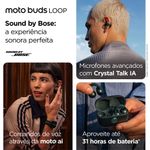 O Fone de Ouvido Moto Buds Loop Verde foi desenvolvido para oferecer conforto, estilo e qualidade sonora premium no seu dia a dia. Com design moderno e compacto, ele combina leveza com tecnologia de ponta para uma experiência completa. Equipado com Spatial Audio, tecnologia Sound by Bose e EVO, o Moto Buds Loop entrega som envolvente e equilibrado, perfeito para música, chamadas e entretenimento. Sua resistência à água com certificação IP54 nos earbuds e IPX2 no case garante maior durabilidade no uso diário.A autonomia impressiona: são até 8 horas de reprodução contínua, com mais 31 horas no estojo de carregamento, totalizando até 39 horas de uso. Leve e ergonômico, cada earbud pesa apenas 6,01g, enquanto o estojo com os fones juntos pesa 52,08g, proporcionando praticidade para levar a qualquer lugar. Com conectividade Bluetooth, microfone integrado e controle de volume, o Moto Buds Loop garante chamadas nítidas e fácil operação. Um acessório indispensável para quem busca qualidade de áudio, mobilidade e estilo. Os fones de ouvido Open Wearable Stereo (OWS) foram projetados para permitir que você ouça músicas ou podcasts sem isolar você do ambiente. Com essa tecnologia, você pode desfrutar de um áudio nítido e de alta qualidade enquanto permanece totalmente ciente dos sons ao seu redor, o que é ideal para manter a segurança durante atividades como esportes, exercícios ao ar livre e até mesmo no dia a dia.