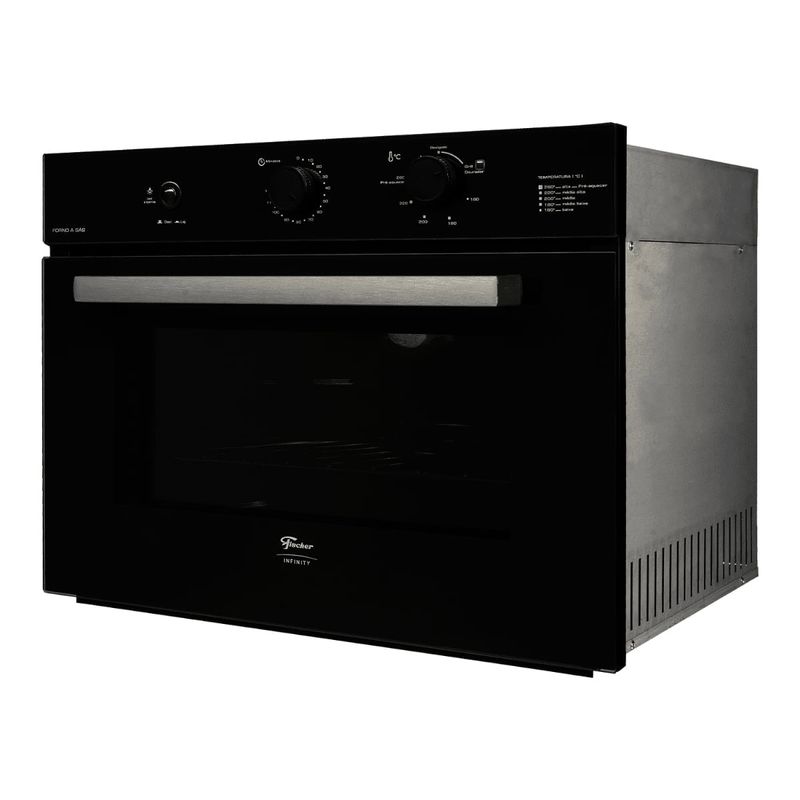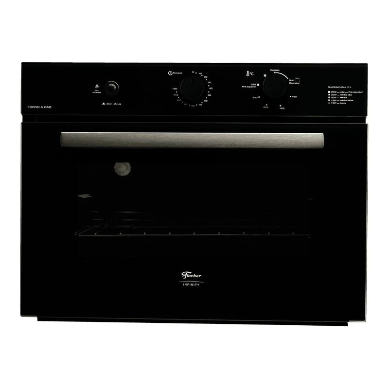O Forno a Gás de Embutir Fischer Infinity 50 litros com Grill é ideal para quem busca praticidade, desempenho e sofisticação na cozinha. Com capacidade de 50 litros, permite preparar diferentes receitas com ajuste preciso de temperatura entre 160 e 260°C e timer com aviso sonoro que indica o momento certo de desligar. Conta com lâmpada interna que facilita a visualização dos pratos e grill elétrico que gratina e doura, garantindo alimentos crocantes e saborosos. Seu revestimento interno EasyClean torna a limpeza simples e rápida, enquanto a porta com vidro duplo proporciona melhor isolamento térmico e economia de energia. Com design elegante da Linha Infinity, disponível na cor preta, o forno combina modernidade, funcionalidade e estilo para deixar sua cozinha completa.