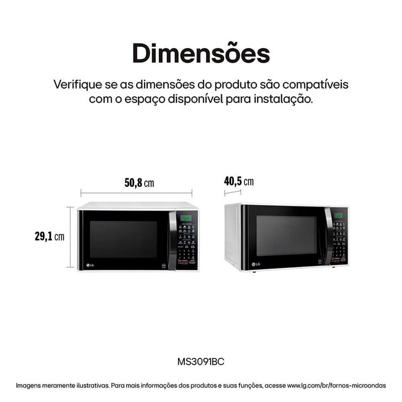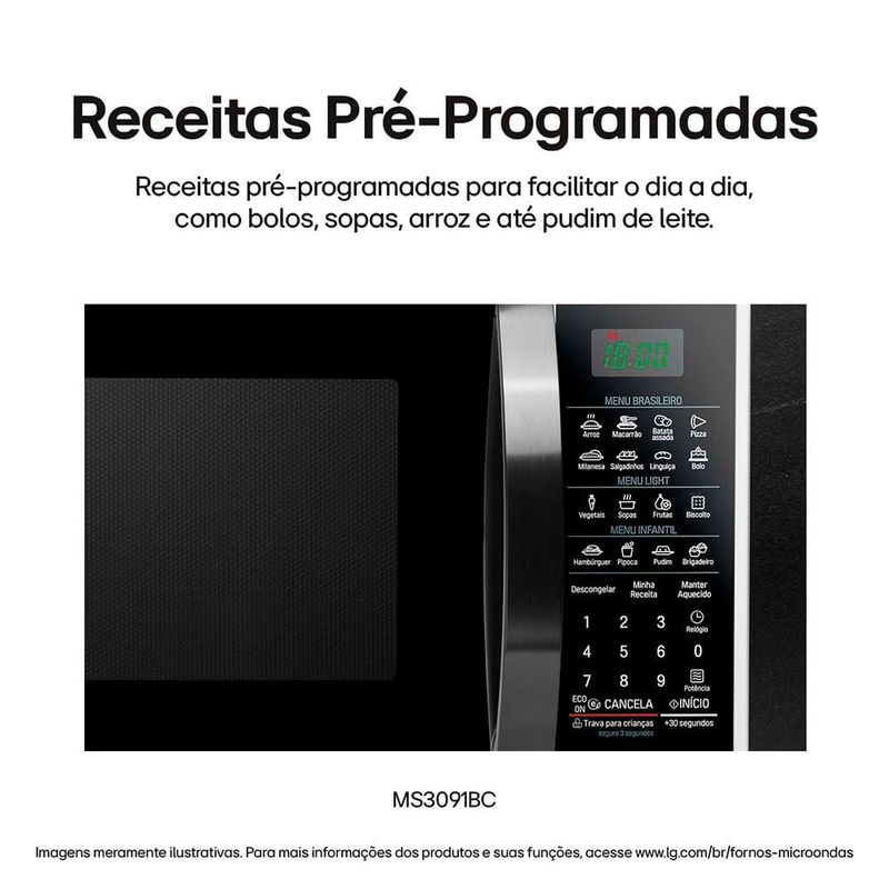 Forno de Micro-ondas LG 30 Litros MS3091 com Função Limpa Fácil e Descongelamento Uniforme - Preto e Branco