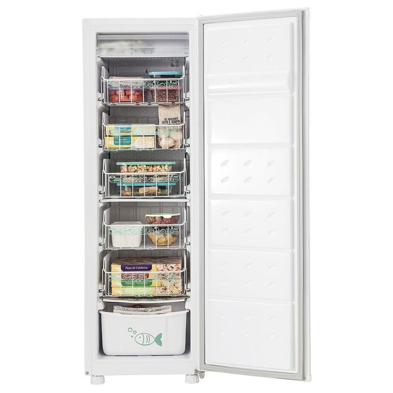 Ótima capacidade interna: pequeno por fora, ideal por dentro! Esse freezer CVU20G, da Consul, traz toda conveniência, organização e espaço que você precisa. Há compartimentos ideias para vários tipos de alimentos, aliando a melhor utilização do espaço e conservação dos alimentos. Possui o compartimento para Gelo e Picolé: não contamina os cubos de gelo com o sabor de outros alimentos e tem uma temperatura ideal para conservar o picolé na consistência perfeita para consumo. E para garantir maior segurança, possui cestos deslizantes com trava de segurança.
