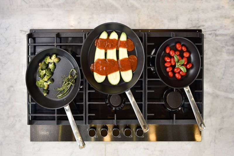 São perfeitas para fritar alimentos em temperaturas de até 400°C, também podem ser usadas no forno em temperaturas de até 250°C. A base TransTherm® permite que a panela seja usada em qualquer tipo de fogão, incluindo de indução.
