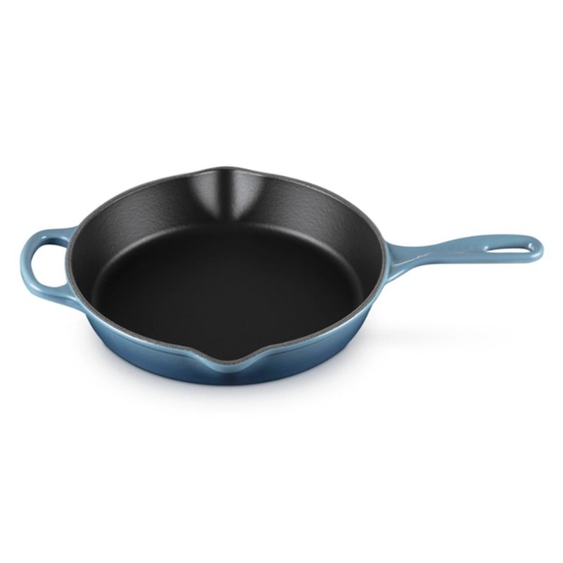 Seu interior com esmalte acetinado preto dispensa o processo de cura tradicional do ferro fundido, sendo pronta para uso desde o primeiro momento. Com o uso contínuo, desenvolve uma pátina natural que reduz a necessidade de gordura e facilita ainda mais a limpeza.