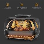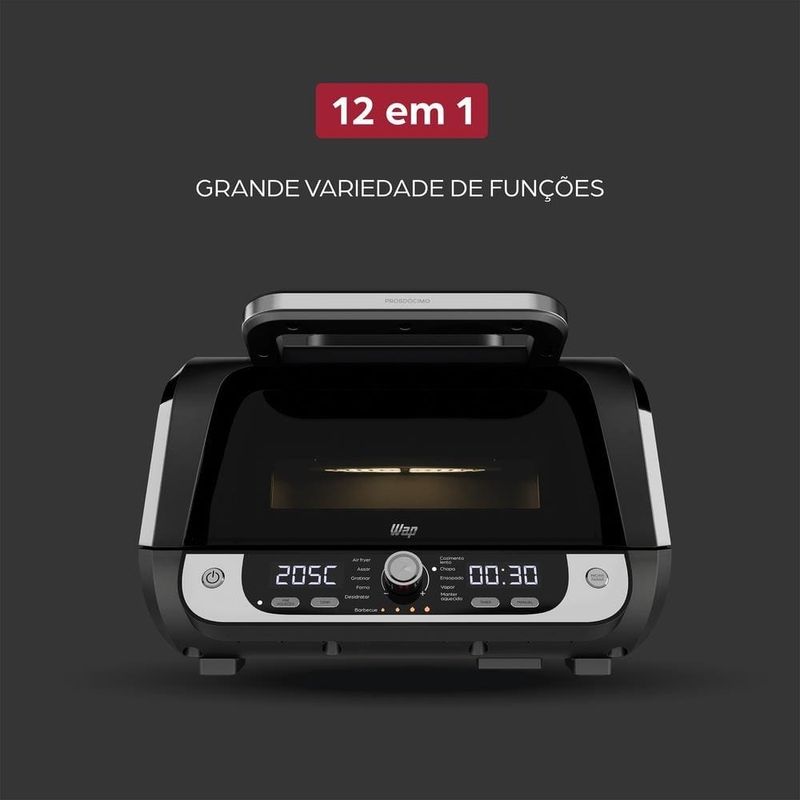 Com 12 funções automáticas e painel digital com display LED, ela oferece uma experiência intuitiva e moderna para preparar receitas crocantes, grelhadas ou suculentas, como se estivessem saindo direto da churrasqueira.