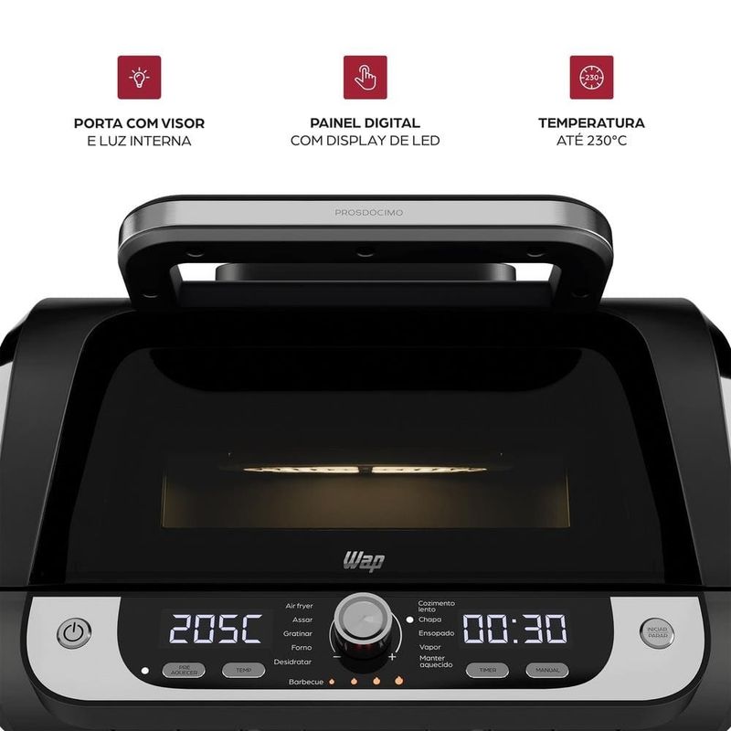 Descubra novos sabores com a praticidade da Fritadeira Air Fryer WAP Barbecue Digital — sua aliada ideal para refeições saudáveis, completas e com o verdadeiro gosto de churrasco.