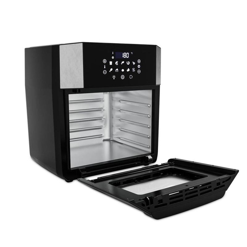 A Fritadeira Elétrica Air Fryer Britânia Oven BAF16A 4 em 1 é uma opção completa para quem busca mais versatilidade na cozinha. Com 16 litros de capacidade interna, ela oferece um grande espaço para preparar receitas de diferentes tamanhos, permitindo desde porções pequenas até grandes pratos para toda a família. A tecnologia Air Flow garante que os alimentos fiquem crocantes e saborosos, utilizando pouca ou nenhuma quantidade de óleo. Seu painel digital intuitivo conta com 10 funções pré-programadas, facilitando a escolha da melhor configuração para cada tipo de preparo, com um simples toque.