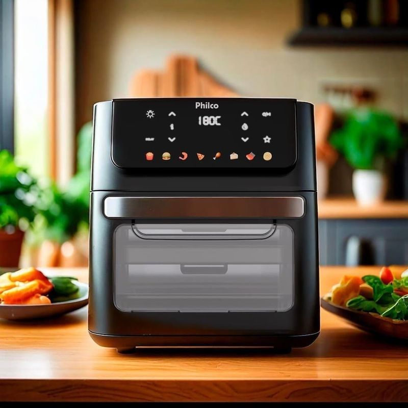 A Fritadeira Elétrica Oven PAF11B da Philco é a escolha perfeita para quem busca praticidade e sabor. Com 8 funções pré-programadas, você prepara diversos alimentos sem complicação. A capacidade de 11 litros garante espaço para grandes porções, ideal para famílias ou para receber amigos.