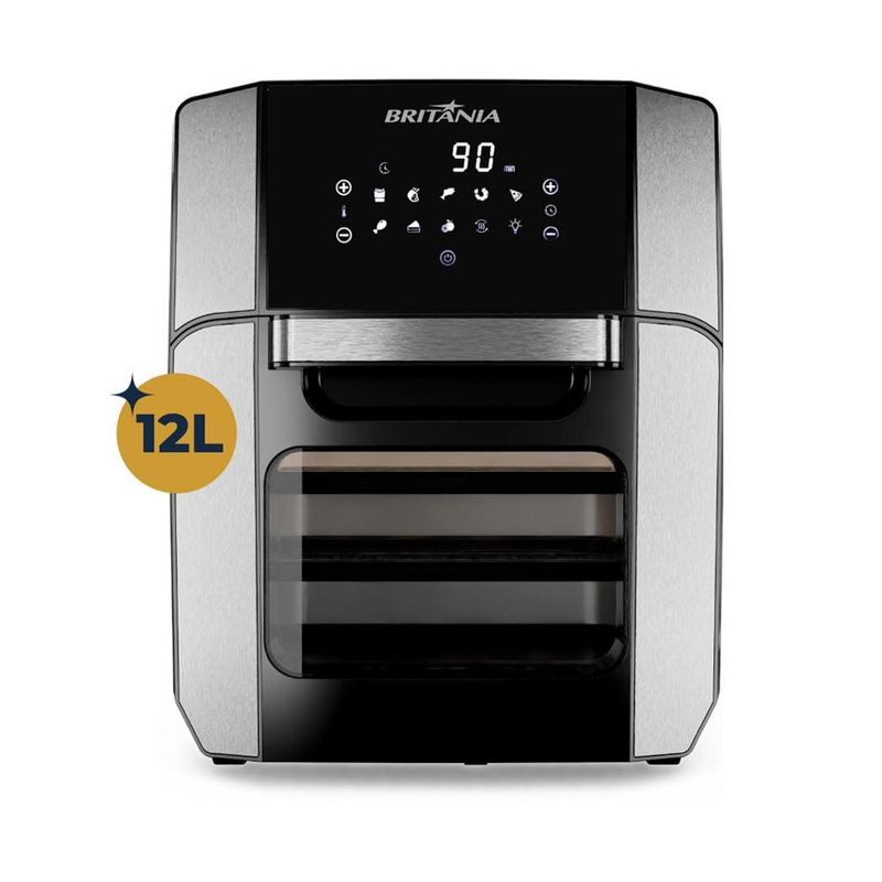 A Fritadeira Air Fry Britânia Oven BFR2100P é 2 em 1, um forno e uma air fry que frita e assa sem engordurar a cozinha, sendo a opção ideal para preparar diversos tipos de alimentos. Além disso, é possível preparar as receitas em grandes quantidades, pois ela possui uma capacidade de 12 litros, permitindo fazer receitas para toda a família.