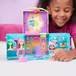 Conheça o Closet Arco-Íris da Gabby's Dollhouse. Ele possui 4 áreas para brincar: Dirija-se à penteadeira e ao espelho, que apresenta três perucas estilosas e dois suportes para perucas, para que você possa fazer o cabelo e a maquiagem de Gabby! Depois, dirija-se ao closet, que possui três cabides de parede e gavetas para armazenamento, além de duas roupas diferentes para Gabby escolher! Depois de escolher uma roupa, suba no pódio giratório e empurre a gabby para frente e para trás na passarela, para girá-la! Então, não se esqueça de abrir sua Dollhouse Delivery, para revelar seu acessório surpresa, assim como Gabby faz no show! Quando ela estiver pronta, use a escada para subir até o estúdio fotográfico, onde você pode escolher um dos 4 fundos diferentes para sua sessão de fotos. Depois de colocar o tripé e a câmera na varanda, Gabby está pronta para fazer uma pose! Para uma última surpresa, digitalize o código QR dentro da Dollhouse Delivery (Caixa Surpresa) para desbloquear uma recompensa especial no aplicativo gratuito Gabby's Dollhouse (disponível para iOS e Android).