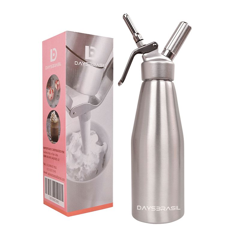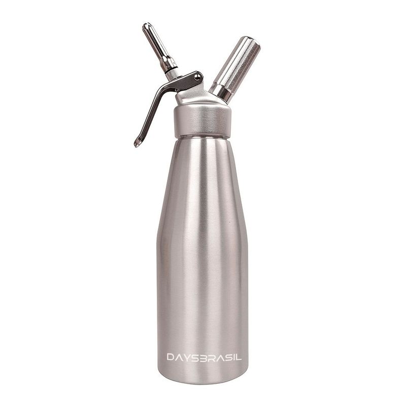 Garrafa Sifão de Inox 1L DaysBrasil, na cor prata e com cabeçote de inox, é ideal para o preparo de chantilly, cremes aerados, espumas, mousses e sobremesas. Nossos sifões são fáceis de usar e muito simples de limpar.
