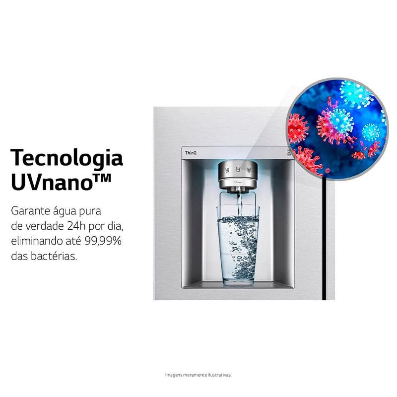 Complemente a experiência de conveniência e tenha água filtrada e gelos (em cubos triturados), direto na porta. E para garantir água pura e saudável, conte com a tecnologia UVnano, que usa uma lâmpada ultravioleta no bocal da saída de água, eliminando até 99,99% das impurezas.