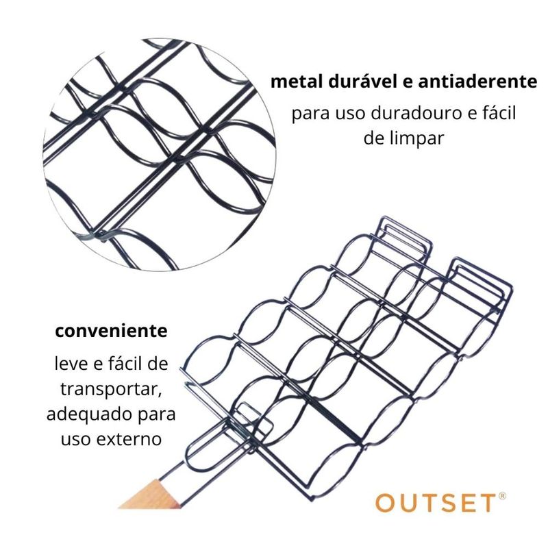 Com um design que mantém o milho no lugar, ela permite o fácil lançamento dos alimentos grelhados, evitando que escorreguem ou se desloquem na grelha.
