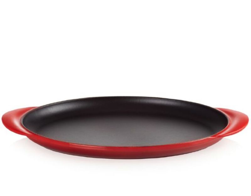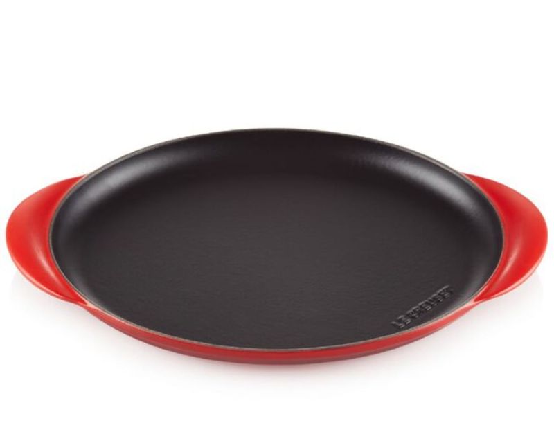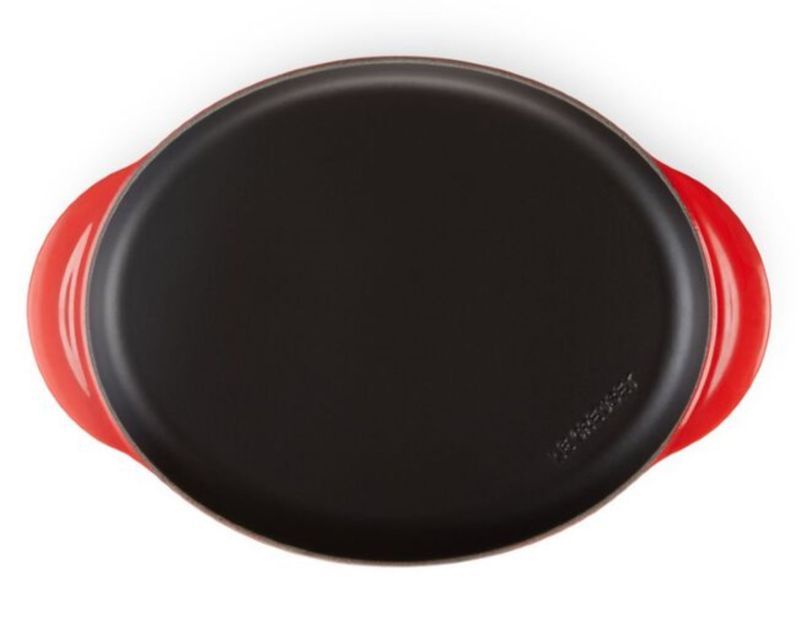 Grelha com superfície lisa para grelhar frango, bifes, peixes e vegetais, com interior esmaltado preto fosco.