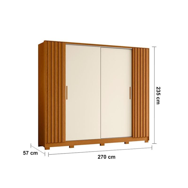 Guarda-Roupa Casal Palumóveis Jacarandá com Cabideiro, 4 Portas, 4 Gavetas, Cinamomo e Off White - 270cm de Largura