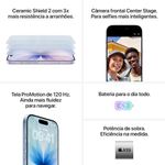 Com linhas elegantes, bordas finas e design resistente em Ceramic Shield 2 na frente, sua beleza dura ainda mais. Para ver e fazer tudo o que gosta na tela Super Retina XDR de 6,3 polegadas5. Mais leveza para navegar e imersão para jogar em ProMotion, com taxa de atualização adaptativa de até 120 Hz.