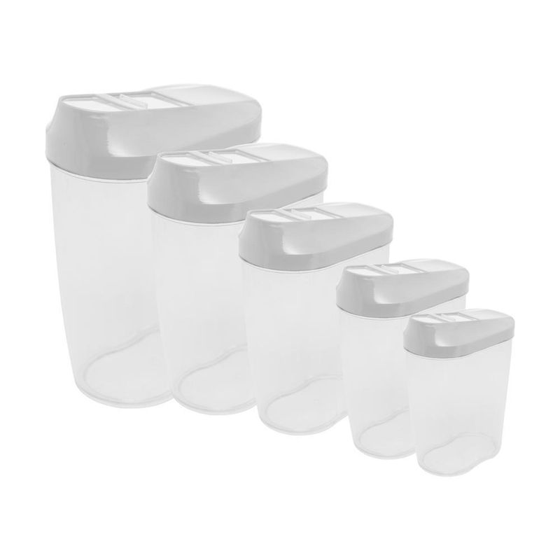 O Conjunto 5 Porta Mantimentos de Plástico com Tampa My Box Branca é a solução perfeita para manter sua cozinha organizada e seus alimentos frescos por mais tempo. Com tamanhos variados de 300ml, 460ml, 680ml, 960ml e 1400ml, este conjunto oferece versatilidade para armazenar diferentes tipos de mantimentos, desde grãos e cereais até sobras de refeições.
