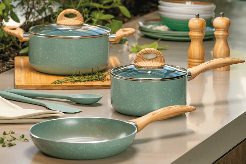 Com o Jogo de Panelas Brinox Antiaderente Ceramic Life 6 Peças Botanika com Indução Verde você tem na sua cozinha tecnologia e responsabilidade ambiental. De quebra, torna o preparo dos alimentos muito mais fácil e agrega ainda mais beleza à sua cozinha com o design contemporâneo desse jogo de panelas.