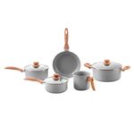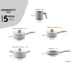 Principais benefícios:Antiaderente Pro-Ceramic (panelas): não gruda, usa menos óleo e limpa fácilMineral Resist (frigideira): resistência extra a altas temperaturasAlumínio: aquecimento uniforme e preparo mais rápidoPFOA free: livre de liberação de toxinasSoft-touch com efeito amadeirado: mais conforto e elegância no manuseioTampas de vidro temperado: com saída para vaporCor Gris com grânulos brancos: neutra e sofisticada para a decoração