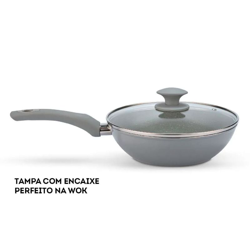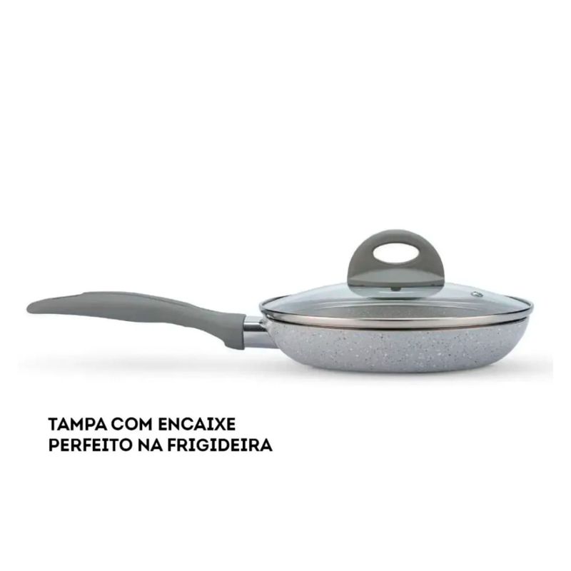 O Jogo de Panelas Brinox Antiaderente Ceramic Life 5 Peças Marble Blend com Indução Cinza Claro é composto por:
