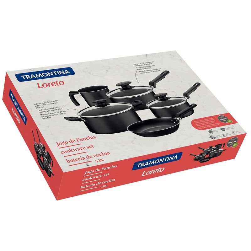 Jogo de Panelas Tramontina 5 Peças Loreto em Alumínio com Revestimento Antiaderente Starflon Max com Cabos e Alças Grafite
