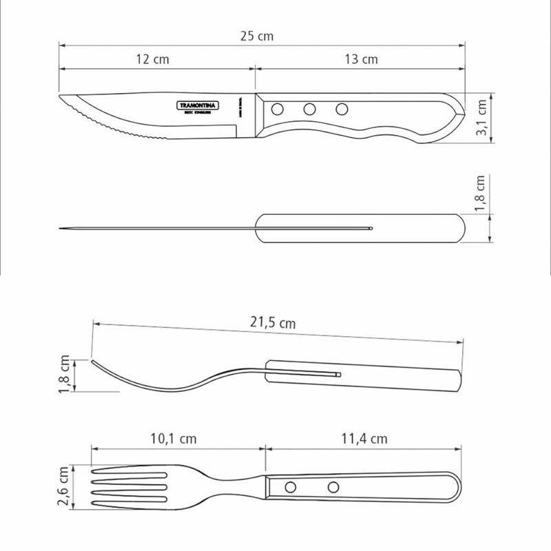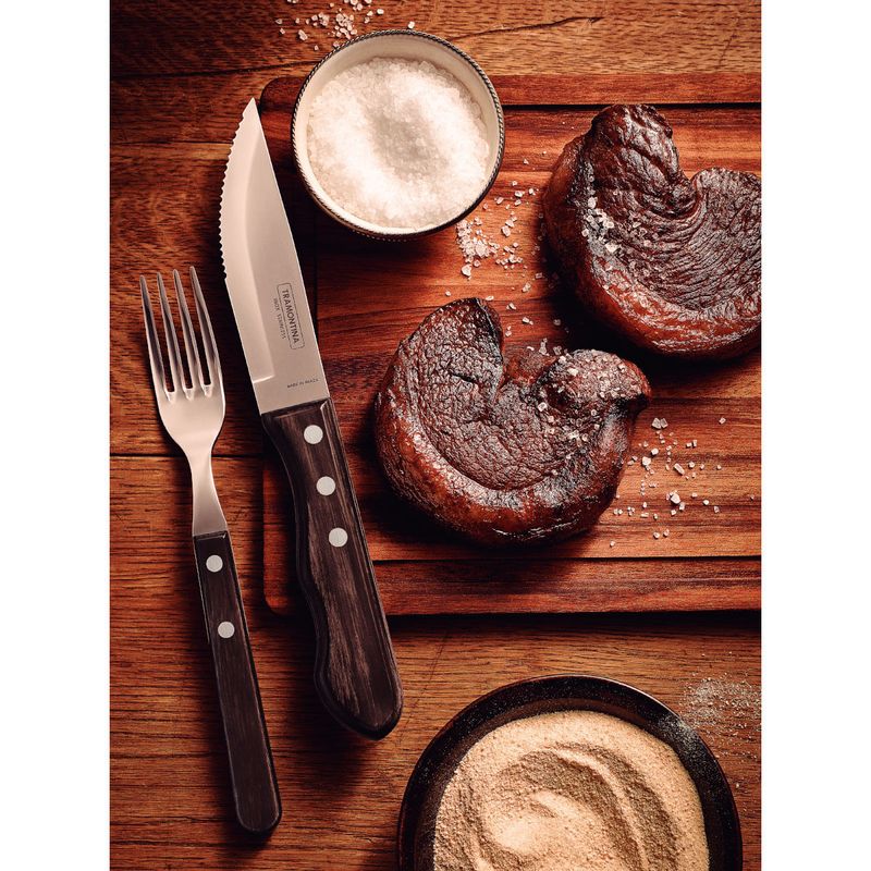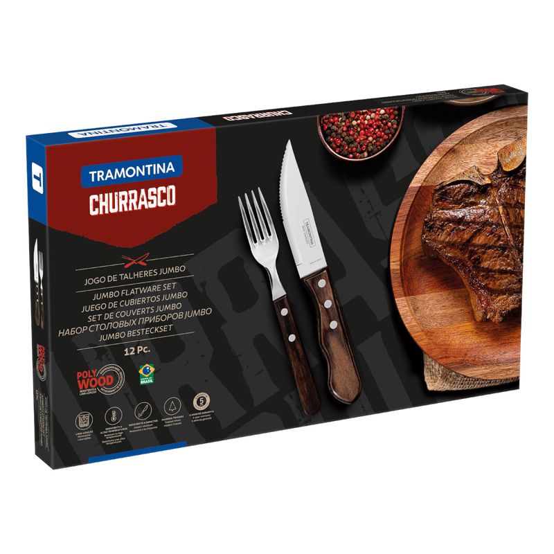 Seu churrasco nunca mais será o mesmo depois do jogo de talheres para churrasco jumbo Tramontina em aço inox com cabo castanho polywood 12 Peças. Um jogo da linha Churrasco que possui peças com lâminas de aço inox, altamente duráveis. Os cabos de madeira tratada Polywood, que proporcionam um design único para a mesa, além de serem resistentes à impactos e altas temperaturas. As facas oferecem um corte prático e sem esforço, tornando o momento de saborear um bom churrasco ainda melhor. A garantia que todos os seus convidados sairão satisfeitos.