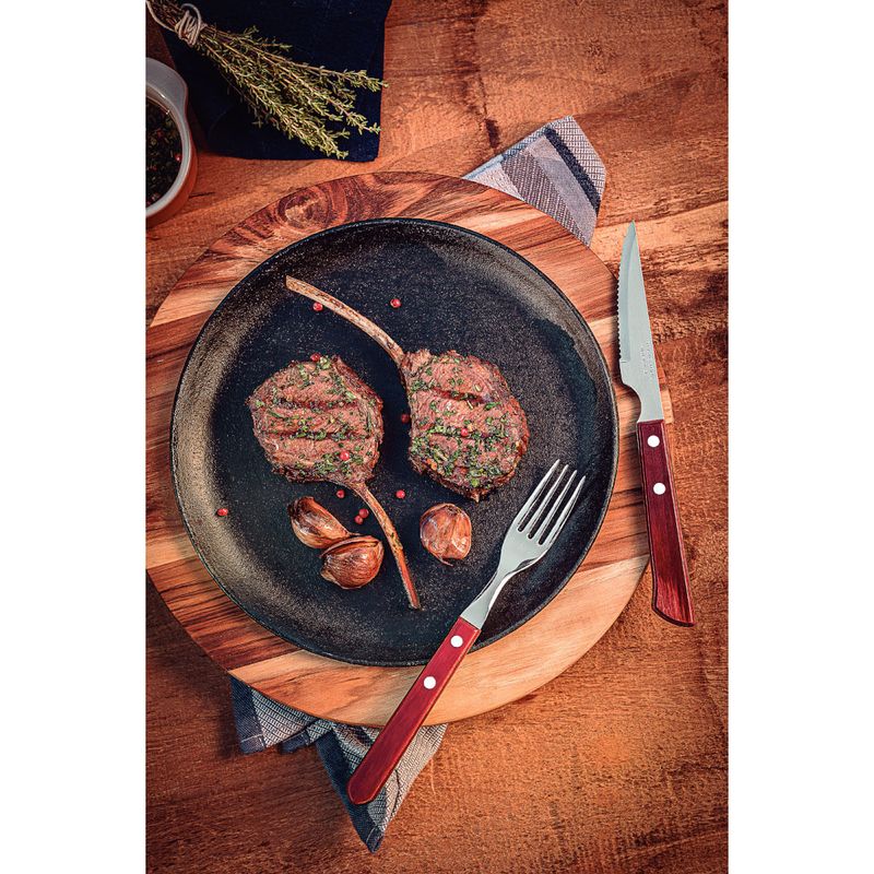 Tenha apenas o melhor na sua mesa e no seu churrasco com o Jogo de Talheres para Churrasco Tramontina em Aço Inox com Cabo Vermelho Polywood 12 Peças. Um jogo exclusivo da linha Churrasco que oferece facas e garfos produzidos com lâminas em aço inox, proporcionando alta durabilidade do fio da lâmina e evitando deformações nos talheres. O cabo de madeira tratada Polywood leva beleza e mais sofisticação para qualquer ocasião, além disso, a madeira é resistente à impactos e altas temperaturas. Uma excelente opção para quem deseja que seu churrasco seja inesquecível.