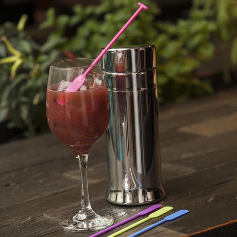 O conjunto também conta com um abridor de garrafas em formato de guitarra, divertido e funcional, que permite abrir suas garrafas rapidamente. Além disso, o kit inclui 5 mexedores para coquetéis, fabricados em polipropileno de alta qualidade, garantindo praticidade e sofisticação na hora de preparar suas bebidas.
