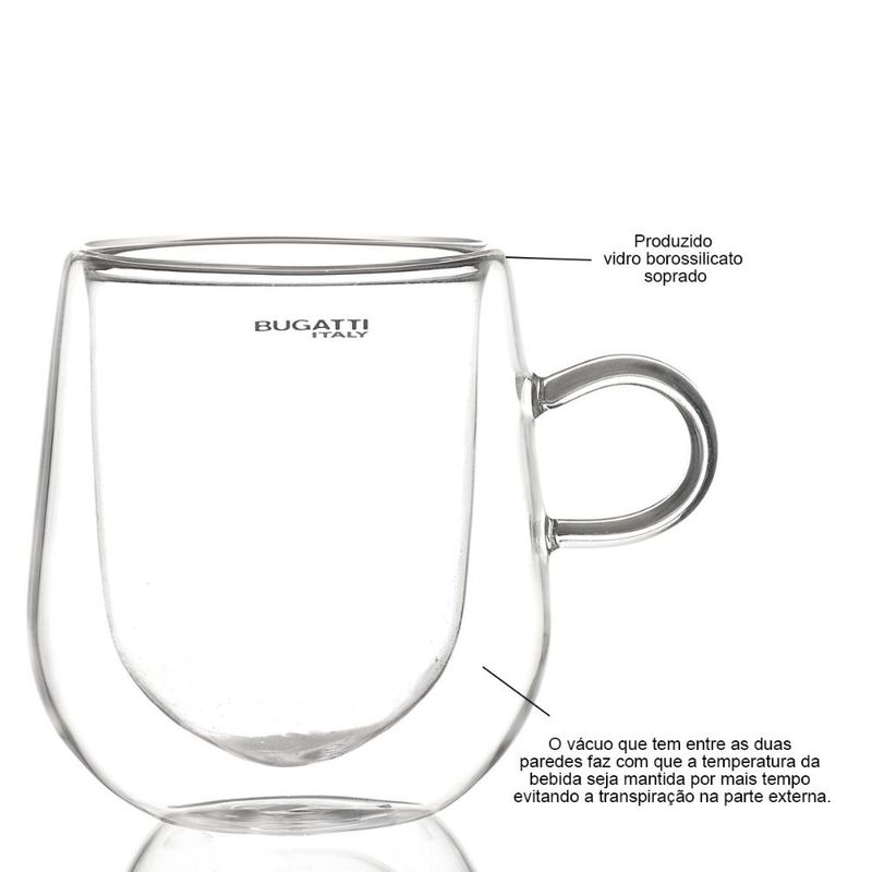 As duas canecas de vidro de borossilicato possuem parede dupla, funcionando como isolante térmico, mantendo a temperatura da bebida por mais tempo, sem transmitir o calor para as mãos. Além disso, o formato arredondado na borda proporciona um toque especial, trazendo delicadeza e leveza à experiência de saborear sua bebida favorita.