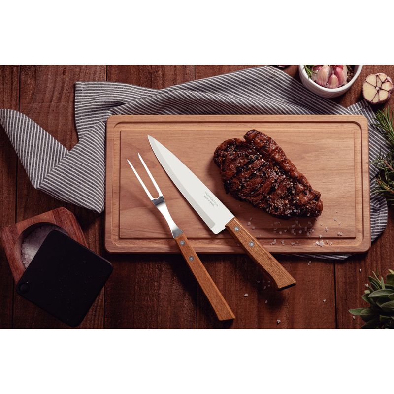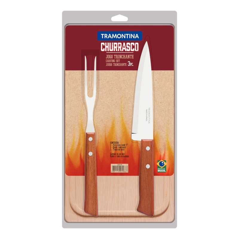 Utilidade DomésticaChurrascoUtensílio para ChurrascoJogo Trinchante Churrasco Tramontina Aço Inox e Cabos de Madeira Natural 3 Peças