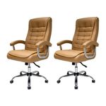 01 Kit 2 Cadeiras De Escritório Big Presidente Com 42 Molas Ensacadas Pillow Top Caramelo