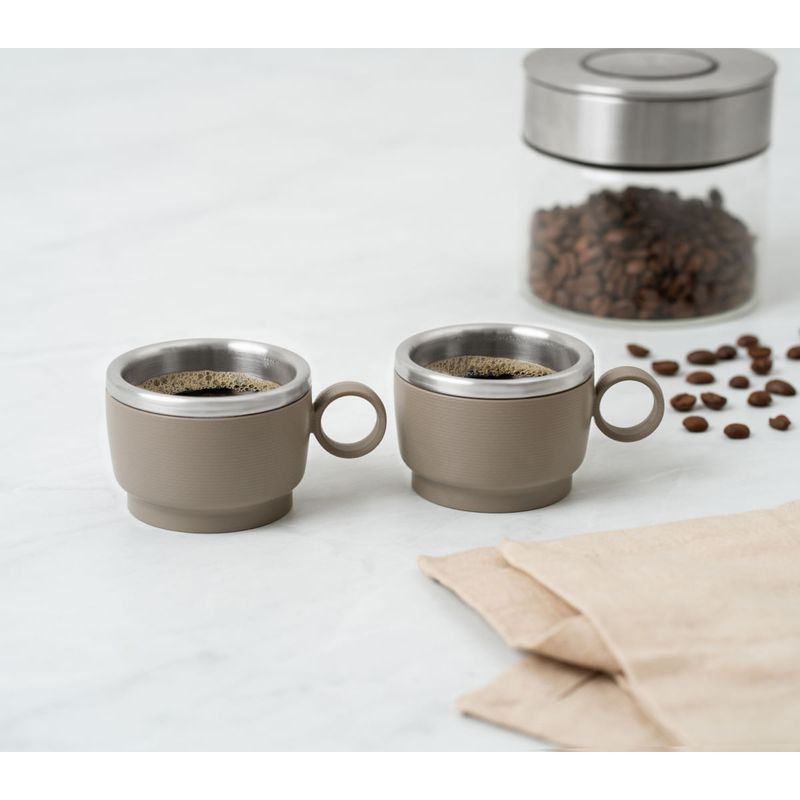 Design funcional com um toque de sofisticação. O Conjunto de Xícaras para Café Tramontina em Aço Inox com Revestimento em ABS Cinza e Alça Redonda traz estilo para a rotina. O interior em aço inox conserva a temperatura da bebida, enquanto o revestimento em ABS oferece conforto térmico e segurança ao manusear. A alça redonda garante um encaixe confortável na mão e o design empilhável facilita o armazenamento.