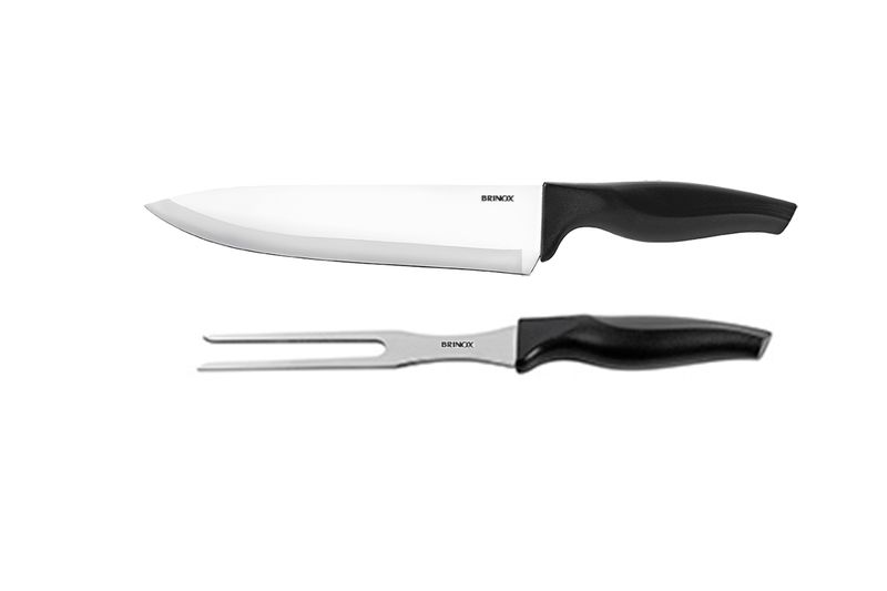 Durabilidade e eficiência com o Kit Brinox para churrasco com faca e garfo trincante, lâmina de aço inoxidável temperado, 2 peças preto linha Grosso (temperado) e acabamento polido. Proporciona uma excelente afiação em todas as facas, ideais para todos os tipos de corte. Composto por 1 Faca para Carne de 8 polegadas (32,5 cm) e 1 Garfo Trinchante com 29 cm. Este conjunto com Faca e Garfo Trinchante é a melhor solução para preparar e servir carnes com segurança e leveza. A faca para carne possui lâmina forte, larga e robusta indicada para cortes de carnes de todos os tipos. Já o Garfo Trinchante é o ideal para prender a carne para verificar o cozimento e corte pois possui dentes desenhados especialmente para estabilizar carnes assadas e mantê-las imóveis, além de manter sua mão longe de alimentos quentes. Para completar o seu churrasco conheça também a linha completa de facas Cross, afiadores de facas Brinox e tábuas de bambu para corte Haus. Após lavar seus produtos inox, enxágue bem e seque em seguida para evitar manchas. E para facilitar ainda mais o seu dia a dia, as peças podem ir à lava-louças. Totalmente fabricados no Brasil com tecnologia nacional, os talheres Brinox são os produtos de qualidade que faltavam na sua cozinha. Conheça também os demais talheres avulsos e produtos das marcas Brinox, Coza e Haus Concept para deixar a sua casa ainda mais bonita com soluções completas de organização. O Grupo Brinox, com desenvolvimento e produção no Brasil, é um dos maiores fabricantes de utilidades domésticas do Brasil. Localizado na cidade de Caxias do Sul, na Serra Gaúcha e expandindo permanentemente a sua atuação no mercado externo, o Grupo Brinox possui canais de exportação nos cinco continentes e atua ativamente em mais de vinte países. Através de suas marcas, Brinox, Coza e Haus Concept, oferece um mix de mais de 6 mil itens, e segue com seus planos de expansão como um grande participante no mercado de utilidades domésticas.
