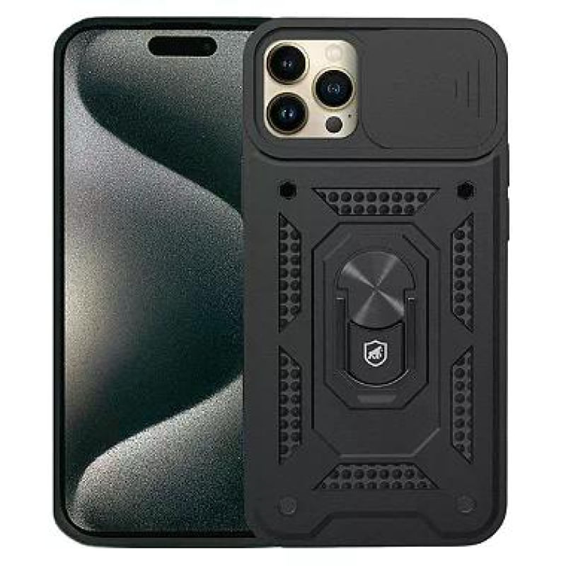 01 Kit Capa Dinamic Cam Protection e Pelicula Coverage 5D Pro Preta para IPhone 15 Pro Max - Gshield