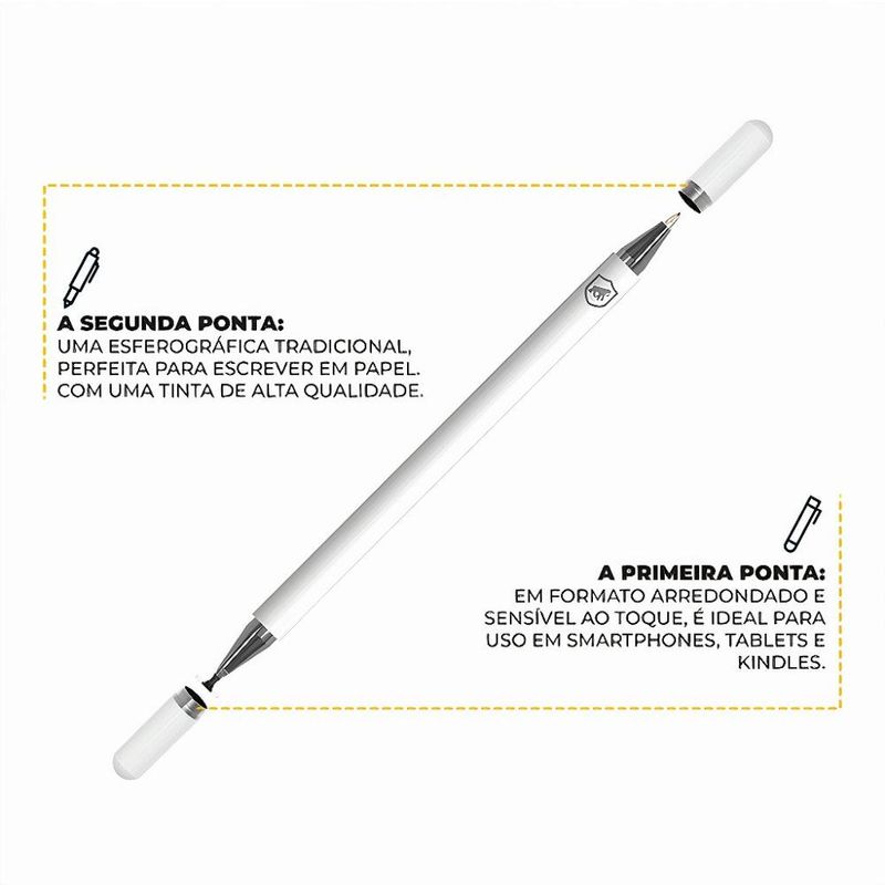 DESCRIÇÃO1)Duas vezes mais forte = duas vezes mais protegido. Com a capa duplamente reforçada, o seu iPad Pro 10.5 estará em segurança! A Capa Dual Shock X para iPad Pro 10.5, da Gshield, foi projetada com uma dupla proteção. Além da proteção padrão de capas, a Dual Shock possui uma elevação na parte traseira que evita que a câmera entre em contato direto com os impactos.2) A Caneta Dinamic, da Gshield, é o acessório multifuncional perfeito para aprimorar a sua experiência com dispositivos eletrônicos e papel. Com duas pontas distintas, essa caneta proporciona praticidade e versatilidade em um único produto. A primeira ponta, em formato arredondado e sensível ao toque, é ideal para uso em smartphones, tablets e kindles. Com ela, você pode navegar com precisão, selecionar opções, escrever e desenhar, tudo sem precisar tocar diretamente na tela. Dessa forma, você evita marcas de dedo, gordura e arranhões indesejados, garantindo uma superfície limpa e sem danos. A segunda ponta da Caneta Dinamic é uma esferográfica tradicional, perfeita para escrever em papel. Com uma tinta de alta qualidade, proporciona uma experiência suave e fluida ao escrever, seja para fazer anotações importantes, assinar documentos ou simplesmente expressar a sua criatividade. Além das suas funcionalidades, a Caneta Dinamic oferece conforto e ergonomia durante o uso, com um design leve e equilibrado que se encaixa perfeitamente na sua mão. A sua estrutura durável e resistente garante uma longa vida útil, permitindo que você aproveite todas as suas características por muito tempo. Adquira agora a Caneta Dinamic da Gshield e experimente a praticidade e versatilidade que ela proporciona. Eleve o seu uso de dispositivos eletrônicos e a sua escrita em papel a um novo nível de precisão e conforto. Se você ainda tem dúvidas sobre a Caneta Dinamic, aproveite para utilizar o campo de perguntas disponível na página do produto. Além disso, recomendamos que você leia as avaliações de outros consumidores, para ter insights valiosos sobre a experiência de quem já adquiriu e utilizou essa incrível caneta. ESPECIFICAÇÕESCapa Dual Shock XMaterial: Polipropileno de alta densidade - Não Amarela Marca: GshieldDimensões: Dimensões exatas do aparelhoProteção: Contra impactos e riscos à traseiraCertificações: Us MilitaryCaneta DinamicCor: BrancaMarca: GshieldTamanho: 16x0,9cmLargura do traço: 0,5mmCor da tinta: PretoPeso: 26g