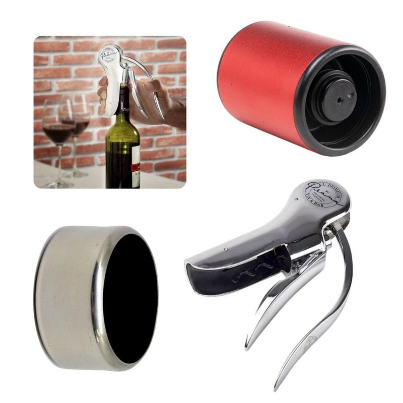 01 Kit Vinho Saca-Rolhas Tampa à Vácuo e Anel Corta Gotas Prana