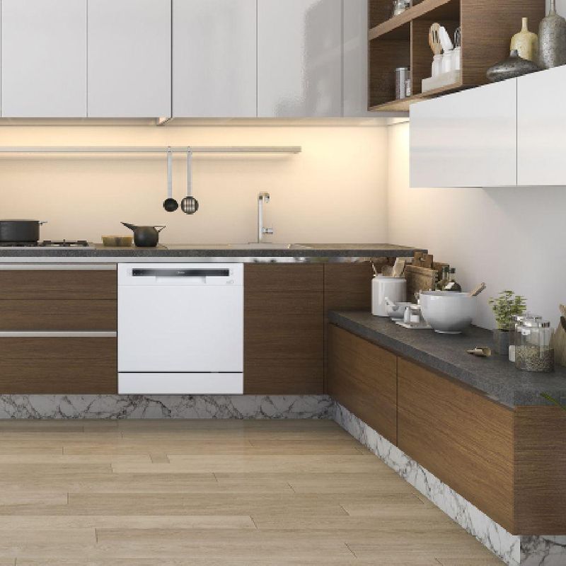 Lava Louca Midea Branca 127V 8 Serviços DWA08B1Facilite sua rotina na cozinha com a Lava-Louças Midea. Compacta e eficiente, ela oferece uma lavagem completa sem desperdício de água e energia, garantindo praticidade no seu dia a dia. Com capacidade para 8 serviços, elimina a sujeira mais pesada com sua função de pré-lavagem, evitando odores e facilitando a higienização. O programa Intensivo esteriliza suas louças a 70 C, proporcionando máxima limpeza e segurança. Pensando na economia, conta com o programa ECO, que reduz o consumo de água e energia sem comprometer a eficiência da lavagem. Além disso, oferece a opção de adiar o início do ciclo em 2, 4 ou 8 horas, permitindo que você programe a lavagem de acordo com sua rotina. Com diversos programas de lavagem, se adapta às suas necessidades. O modo Rápido é ideal para louças levemente sujas, enquanto o programa 1 Hora garante a limpeza completa em apenas 60 minutos. Já o modo Normal é perfeito para o uso diário, limpando panelas, pratos e copos com eficiência. Seu design moderno em aço inox interno e gabinete branco agrega elegância à sua cozinha. Possui painel de controle por botão, display LED e luz indicadora de torneira, proporcionando facilidade no uso. Com nível de ruído de apenas 49 dB, ela opera silenciosamente, garantindo mais conforto para o seu lar. A Lava-Louças Midea 8 serviços acompanha mangueira de abastecimento de água e de drenagem, cestos ajustáveis e suporte para talheres, otimizando o espaço interno. Adquira já a sua Lava-Louças Midea e transforme sua experiência na cozinha!