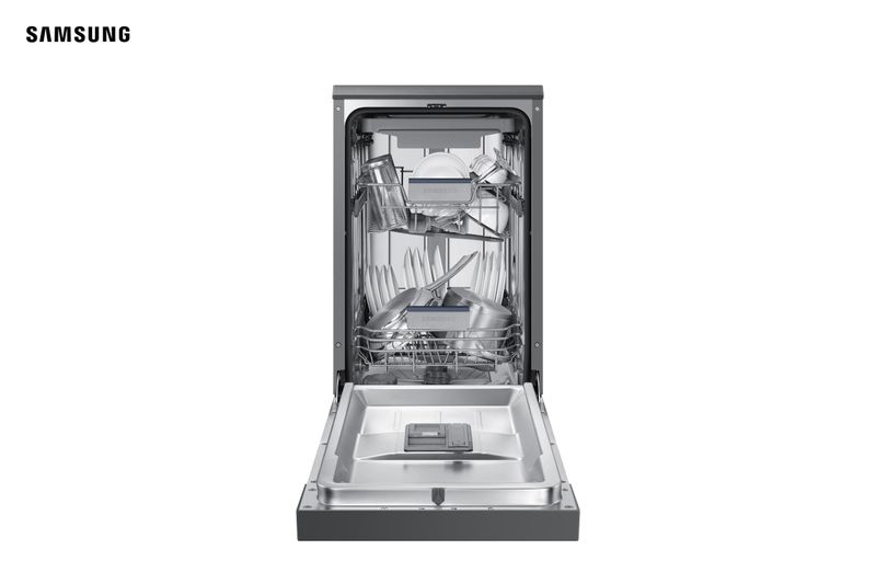 Menos barulho. Menos incômodo. A Lava-louças Samsung modelo DW50DG420 com capacidade para 10 serviços é a escolha ideal para quem procura uma lavagem rápida, silenciosa e econômica. Equipada com uma cuba de aço inoxidável, esta lava-louças é a mais silenciosa da categoria, emitindo somente 46 decibeis de ruído.Mais economia a cada lavagemLavar louça na pia com a torneira aberta, gera um consumo de 243 litros de água em 15 minutos. A Lava-louças Samsung, em seu ciclo de lavagem automático, possui o consumo de 9,5 litros de água. Ou seja, você economiza 90% mais água em relação à lavagem convencional.Ciclos inteligentesCom a Lava-louça Samsung você pode aproveitar uma série de ciclos inteligentes como a função eco para lavagem econômica, a função higiene para limpeza profunda, função meia carga para não acumular louça. E muito mais! Ah! E você pode monitorar a lavagem de forma simples pelo painel digital. Sua louça seca, limpa e organizada. Suas prateleiras possuem ajuste de altura para você lavar pratos e panelas de diferentes tamanhos. Também há um cesto multifuncional feito para otimizar espaço e higienizar seus talheres. Quando o ciclo de lavagem estiver concluído, seu lava-louças reconhece o fim do processo e abre 10cm para permitir a saída do vapor, secando sua louça com mais agilidade.