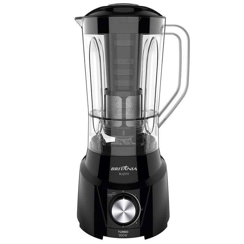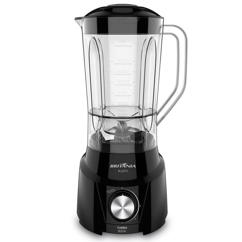 Com o Liquidificador Britânia Turbo BLQ970P você tem potência de 900W com alto desempenho e versatilidade para preparar vários tipos de alimentos para toda família na sua cozinha. Seu copo é robusto e super-resistente e com capacidade total de 2,6L. Ele conta com 4 velocidades mais a função Pulsar e lâminas com alto poder de trituração para você preparar açaí, vitaminas, mousses, smoothies, cremes, sopas, bolos e muito mais. E ainda acompanha filtro para coar sucos ou molhos separando a semente e o bagaço.E para limpar o liquidificador de uma maneira simples e rápida conte com a função autolimpeza.