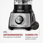 Prepare receitas deliciosas para toda a família com o Liquidificador Mondial Turbo L-1100! Com capacidade total de 3,0 litros, este liquidificador é ideal para quem busca praticidade e eficiência na cozinha. Seu copo super resistente a quedas e riscos garante durabilidade e segurança no uso diário.O Liquidificador Mondial Turbo conta com 12 velocidades, oferecendo versatilidade para bater, triturar e misturar diversos tipos de ingredientes com precisão. A função autolimpeza facilita a higienização do aparelho, economizando tempo e esforço após o preparo das suas receitas favoritas.Com sistema de encaixe rápido, a montagem do liquidificador é simples e prática, ideal para quem valoriza agilidade no dia a dia. Os detalhes em inox agregam sofisticação ao design, além de proporcionarem maior resistência e durabilidade ao produto.As lâminas de alta performance garantem uma mistura homogênea e eficiente, triturando até os ingredientes mais duros com facilidade. A tampa com medidor de 40 ml removível permite adicionar ingredientes durante o funcionamento, sem precisar desligar o aparelho.Para completar, a base antiderrapante oferece estabilidade e segurança durante o uso, evitando acidentes e garantindo tranquilidade no preparo das suas receitas. Invista em qualidade, potência e design com o Liquidificador Mondial Turbo L-1100!